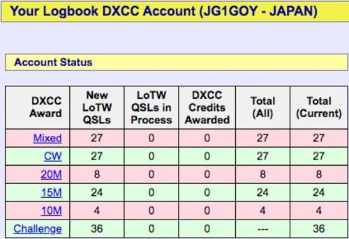 Logbook of The World WWDXでQSOしたHS、HA、VK9CをCfmして3ヶ月半ぶりの更新 コンテストでのAll Newは15にも達したのでまだ増えるだろう。今朝までのマッチドログ Clublog DX'erの先生方がよくブログに載せているDX-Peditionの星取り表をついに当局でも実現…