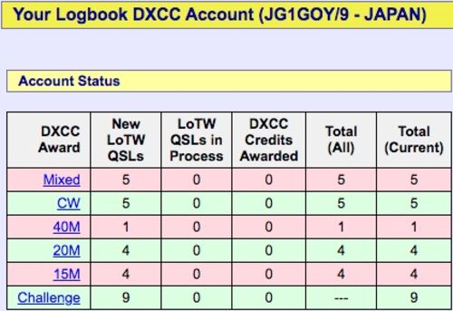 Fixedで36まで行ってたのに、振り出しに戻ってやっと5 内訳はWkd順にZL、BY、JA、HL、UA0C25に向けて別宅の常設アンテナをグレードアップしたいところ。